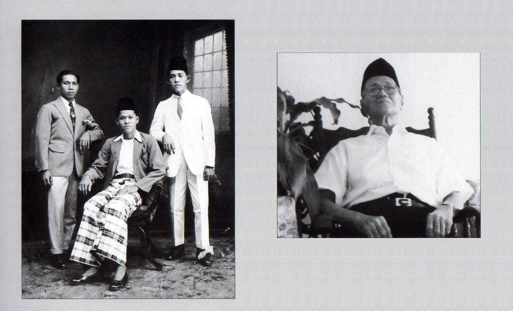 Left: Haji Kahar’s son Encik Abdul Hai seated, in his youth, with friends; Right: Encik Abdul Hai from an interview in 1981, aged 70.